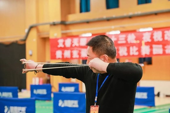 比赛现场,选手们全神贯注,抬手、拉弓、瞄准、弹射,一连串动作行云流水,进行激烈角逐。